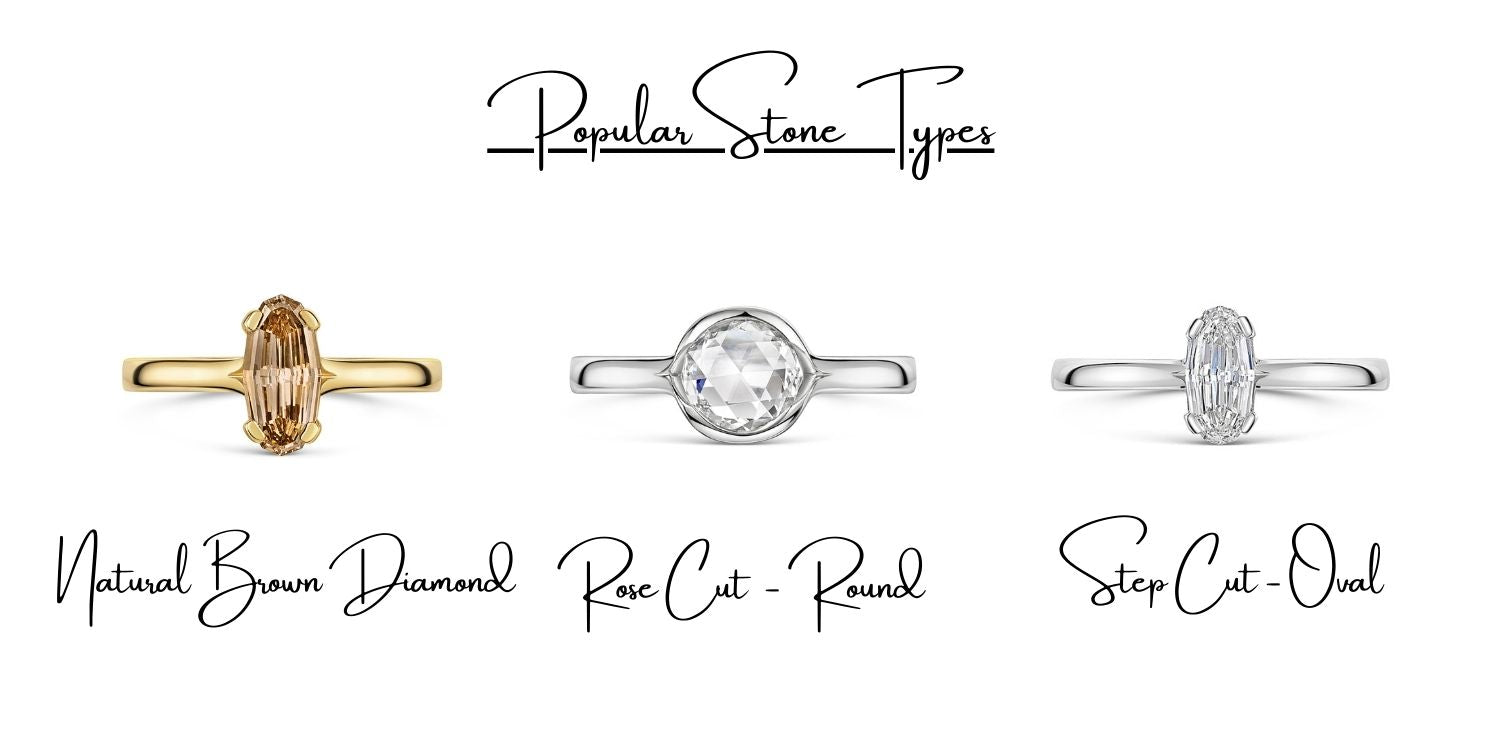 Create unique and bespoke unusual solitaire engagement rings. Explore our distinctive designs, from vintage-inspired settings to modern artistic styles, and start crafting a one-of-a-kind ring that truly reflects your love...