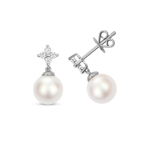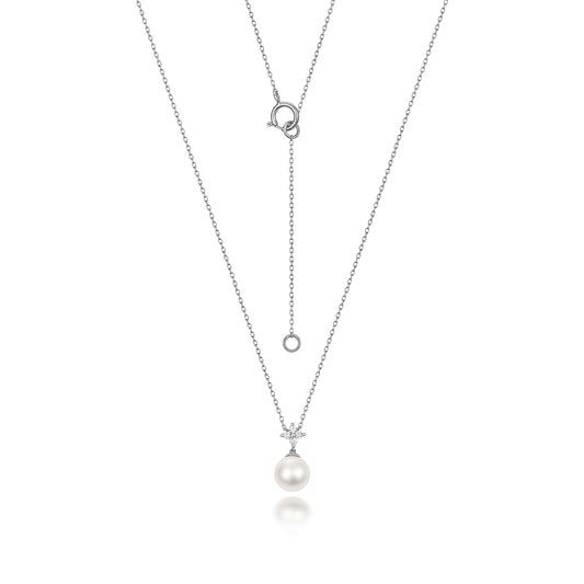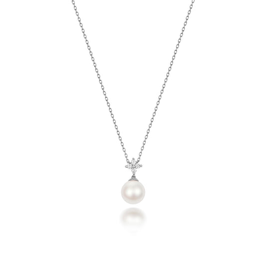 Diamond Flower & White Pearl White Gold Necklace