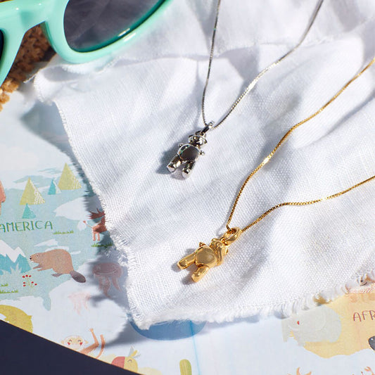 Children's Yellow Gold Diamond Teddy Bear Necklace