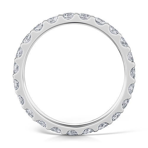 If you’re not sure, it can help to try on both styles with your engagement ring. Some people choose a plain band now, then add a diamond eternity ring later to celebrate a special anniversary.