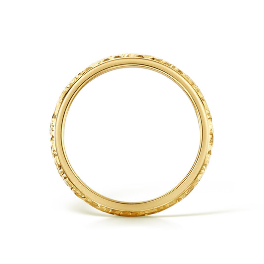 Hand Engraved Delicate Wedding Band in Yellow Gold
