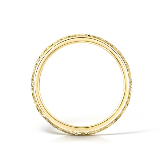 Hand Engraved Vintage Style Wedding Band in Yellow Gold