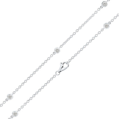 Adorn yourself in luxury with this exquisite Diamond Station Necklace. Crafted with 18ct white gold, this timeless piece is available in your choice of lengths from 18" to 36", for a look as delicate or dramatic as you wish. Radiate sophistication in the classic "Diamond by the yard" style. Take a look at the matching Diamond Station Bracelet to complete the look.