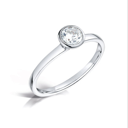 This understated Bezel Set Engagement Ring in Platinum is perfect for those that love simple beauty. Made just for you in your choice of diamond size by our highly skilled team.