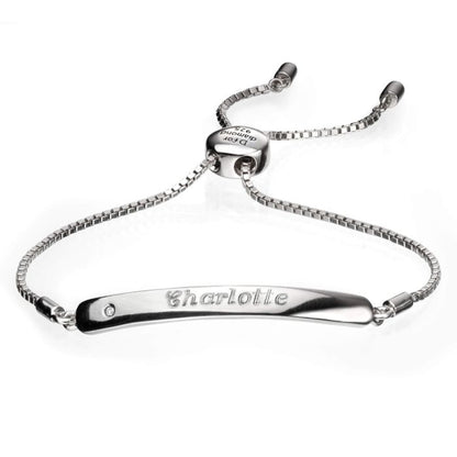 Treat your little one to our Children's ID Adjustable Toggle Bracelet. Made with recycled sterling silver and platinum plating, it features a sparkling diamond and customisable engraving option. Perfect for a special occasion or everyday wear, give the gift of style and sentimentality to your child.