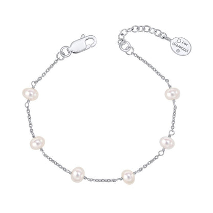 This Children's Pearl Station Bracelet is the perfect way to shimmer and shine for any occasion! It is intricately crafted with freshwater pearls, sterling silver with a platinum plating for a long lasting white finish and hypoallergenic glimmer that's perfect for your delicate little one's skin. It's the perfect Christening or flower girl present, and adjustable length so it's guaranteed to grow with them.