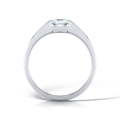 This chunky princess cut diamond engagement ring is perfect for those who want a simple diamond ring that is a little more substantial than the classic engagement ring. The bezel setting ensures the diamond is secure, and offers a minimalist style.