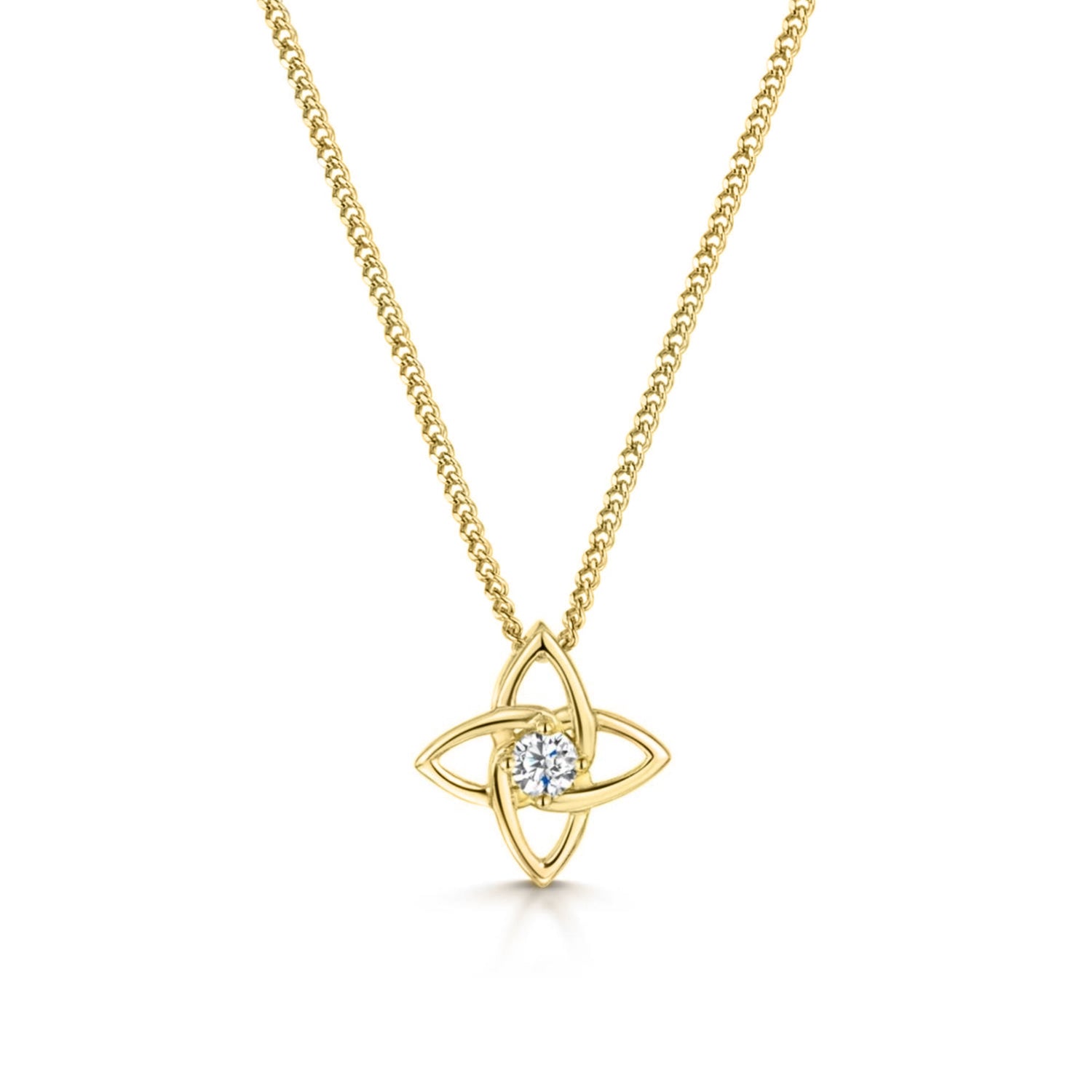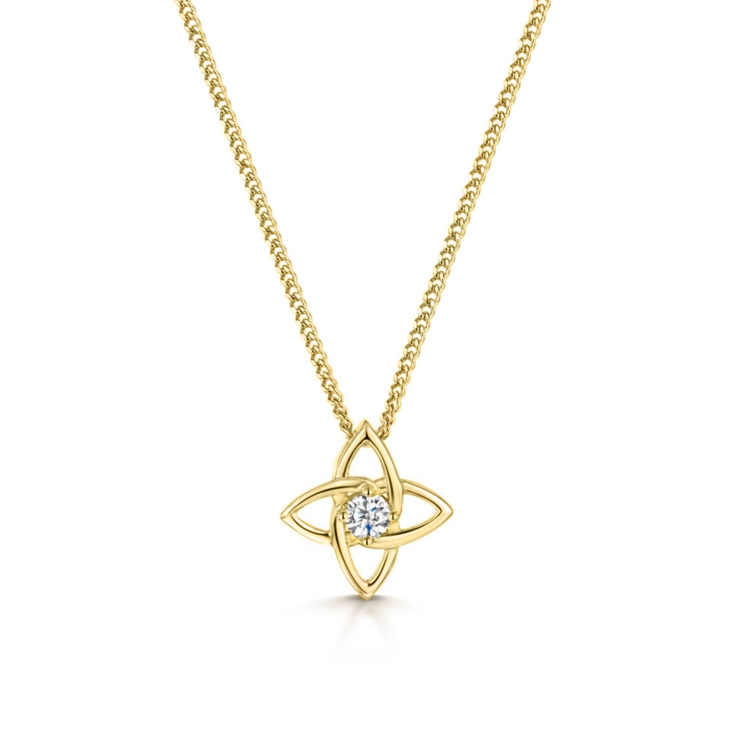 This beautiful star shaped pendant has a single round brilliant cut diamond which has been skillfully set in the centre. The design means that the pendant is free to slide on the chain, making a really easy piece to wear.