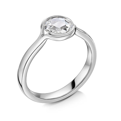 I have designed this minimal style rose cut diamond engagement ring to showcase the beauty of the diamond, with understated elegance. The diamond is set low to the finger, in a semi bezel setting which not only looks beautiful, but is also practical for everyday wear.